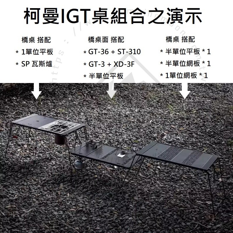 GT-3 半單位爐架搭配柯曼蝴蝶爐 (XD-3F),可以單獨做爐桌