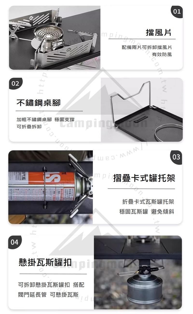 GT-36 一單位爐架可搭配 SOTO 卡式爐(圖片中統稱蜘蛛爐),不可以單獨做爐桌