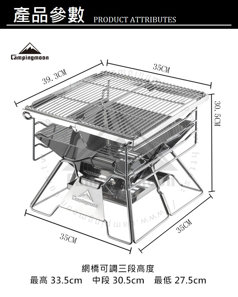 - 炭床中間有凹槽設計可放置易燃物品引燃木炭、柴火等