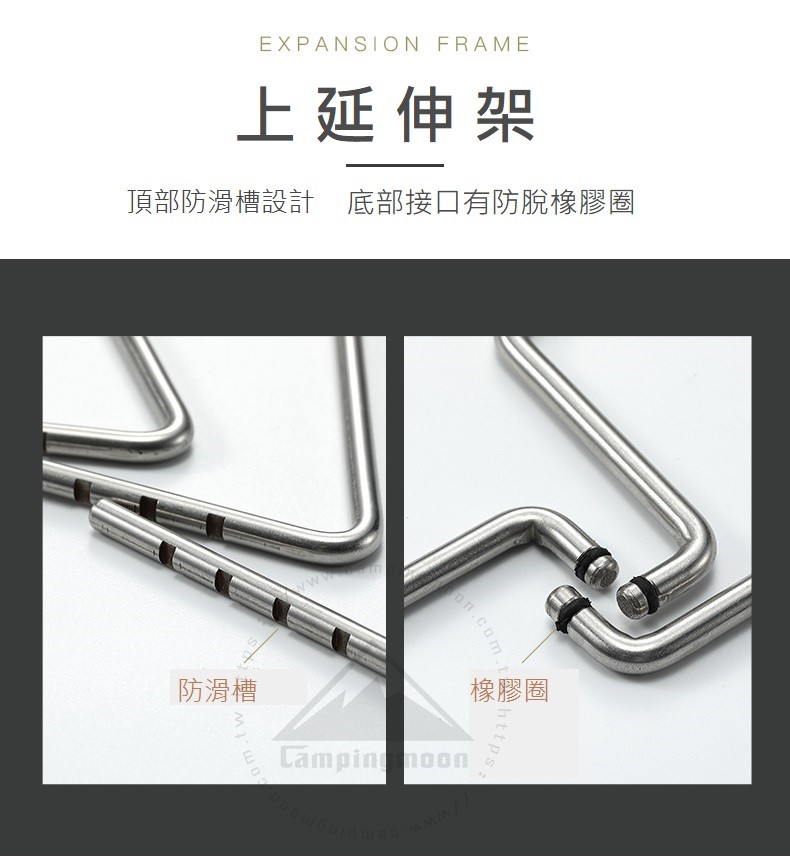• 上延伸架頂部有防滑槽設計,底部接口有防脫橡膠圈