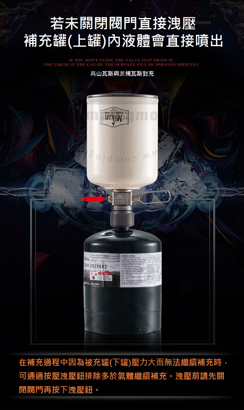 - 請留意對充後仍可能有極少量殘留瓦斯。