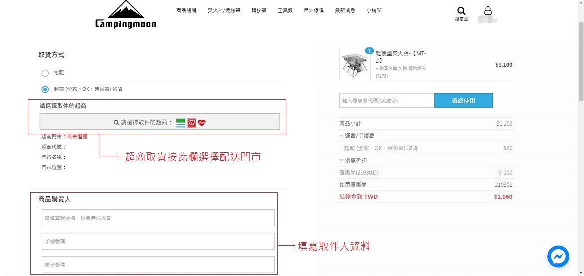 【STEP 5-1】選擇取貨方式並填入實際收件/取件人資料